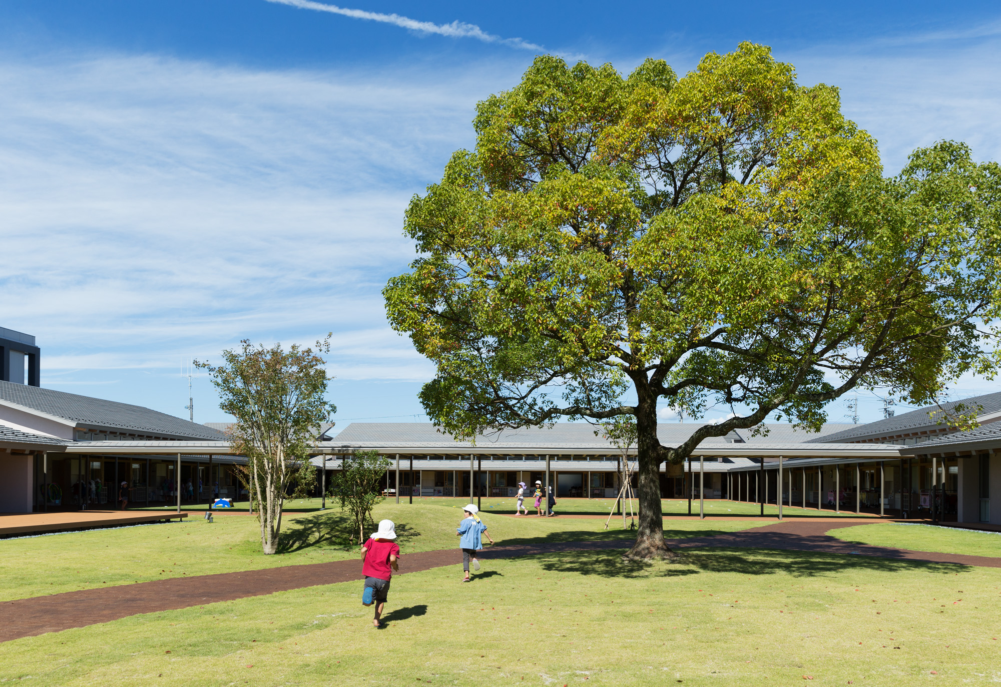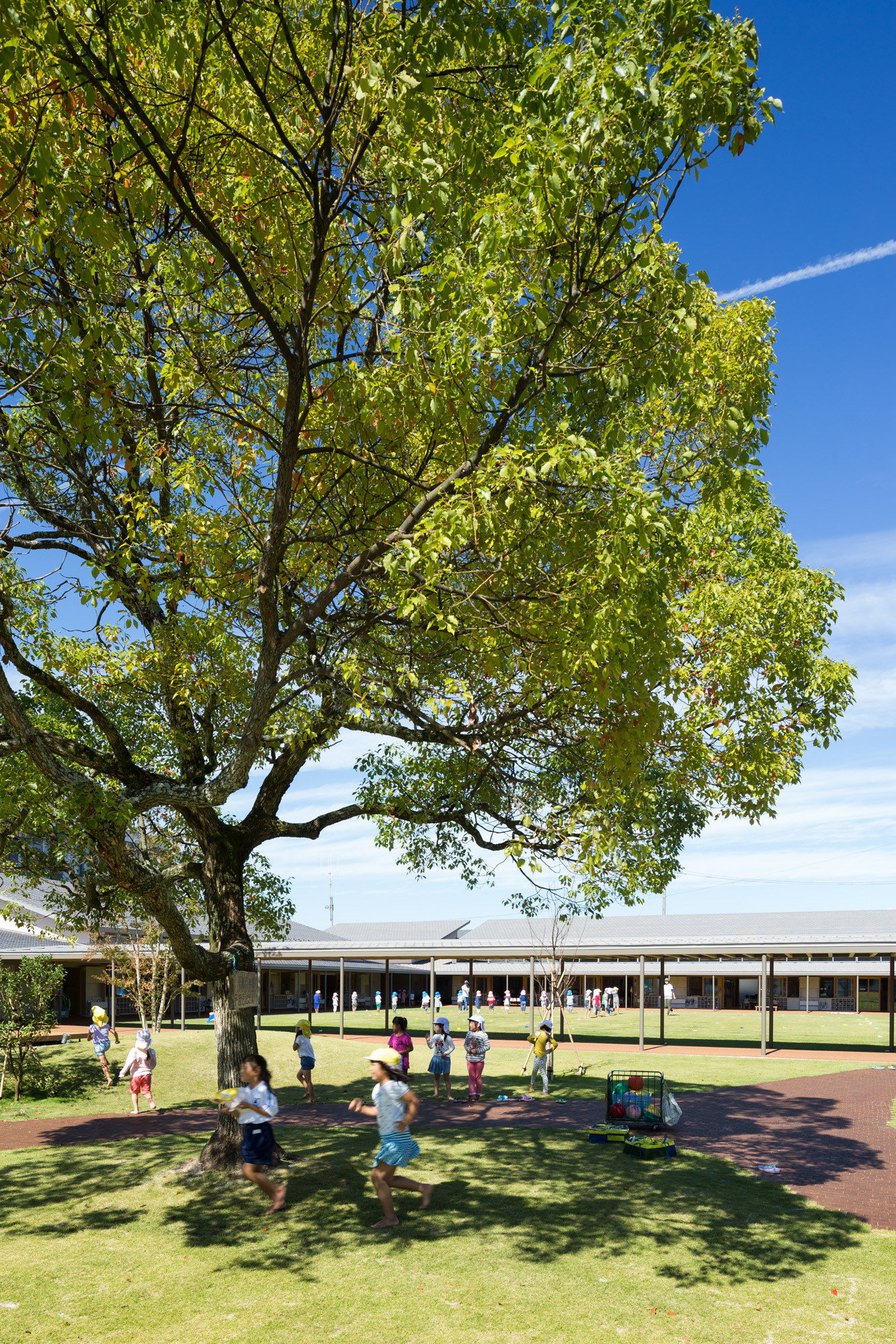 44年の長い歴史を持つ、社会福祉法人こじまこども園の園舎建替えプロジェクトである。 「はだし教育」「マーチングバンド」をはじめとする独自の教育方針を生かすために、建物の中央に30m角の芝生広場を、南にはミニタウン設けている。また、小島プレス工業が三重県に保有する山林と、豊田市内の山林から杉を切り出し、人にやさしい木造園舎を計画した。